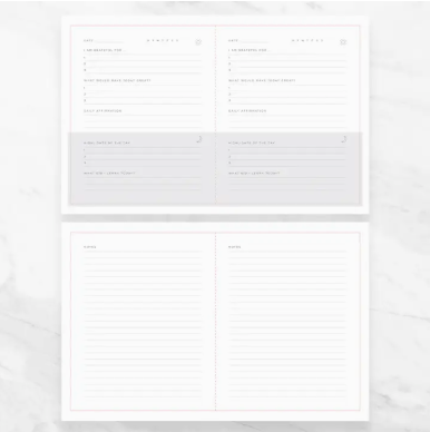 Each entry guides you with simple, intentional prompts — what you’re grateful for, what made your day brighter, and the affirmation you want to carry with you. There’s space to capture the day’s highlights and the lessons that shaped you, turning your everyday moments into meaningful reflections.
